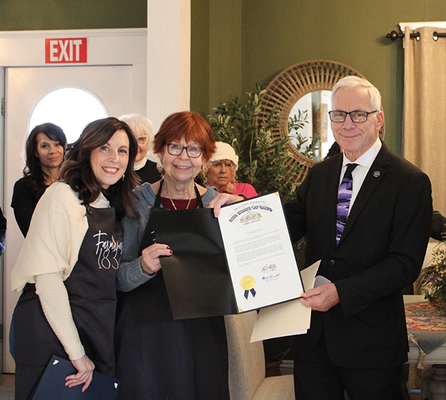 Farmhouse 1834 owners despina simons and lynn bracic accept commendations And congratulatory best wishes from several local and state diginitaries.