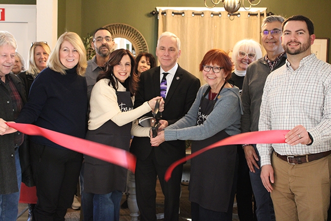 Friends, family, and dignitaries join in on the offical ribbon cutting for Farmhouse 1834, now open in medina.