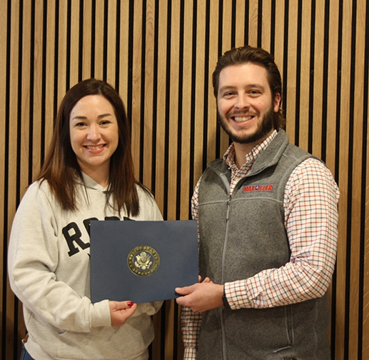 Owner Jamie Winebrenner recieves a certificate of congratulations on the