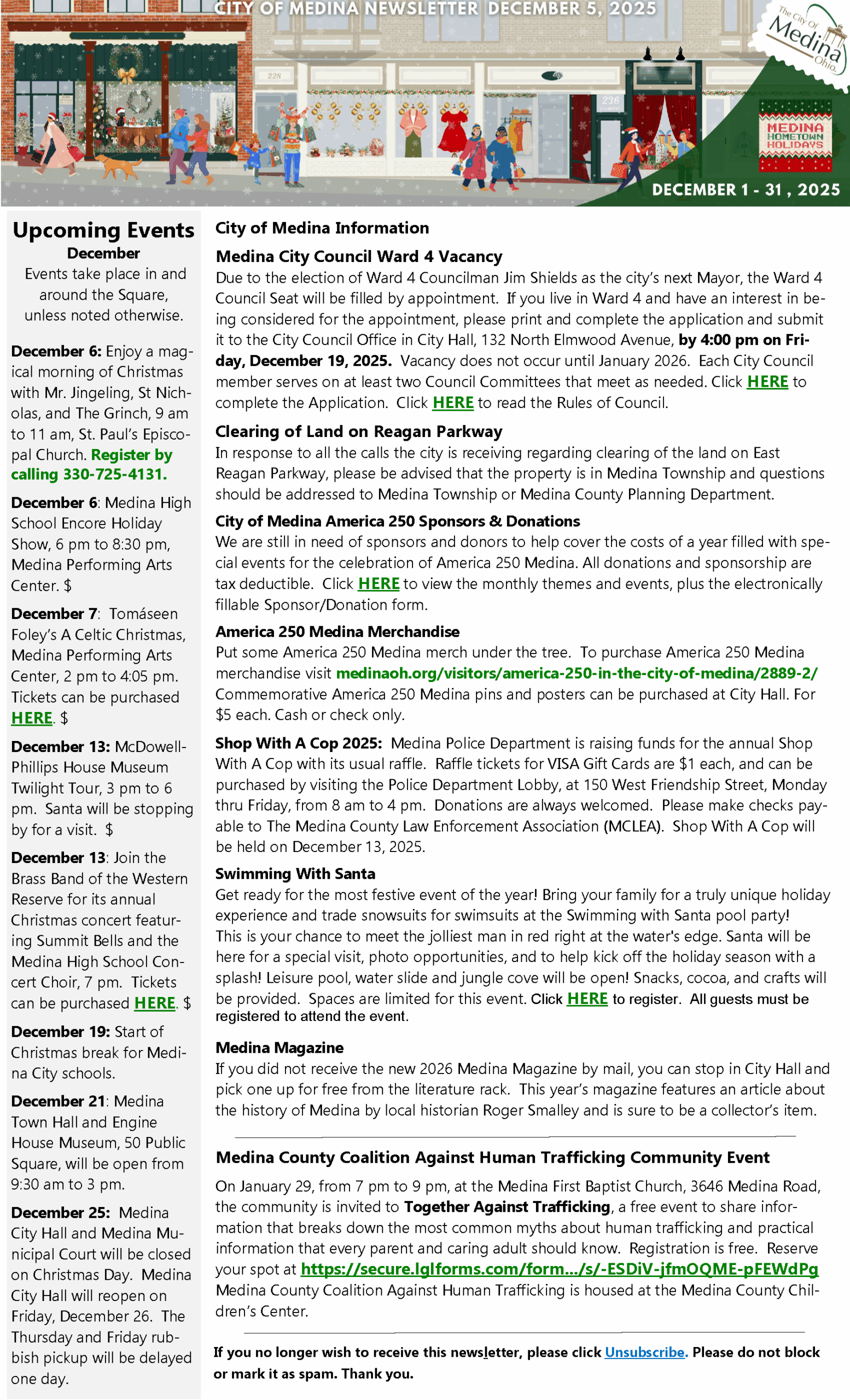 Want to receive the newsletter in your inbox every Friday? Click on the City Newsletter button at the bottom of the page to subscribe.
